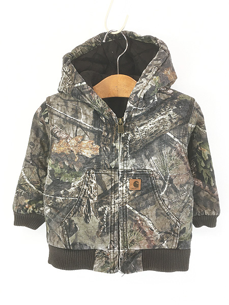 キッズ 古着 Carhartt 防寒 裏地 キルティング リアルツリー カモ 迷彩 ダック ワーク アクティブ パーカー 18ヶ月位