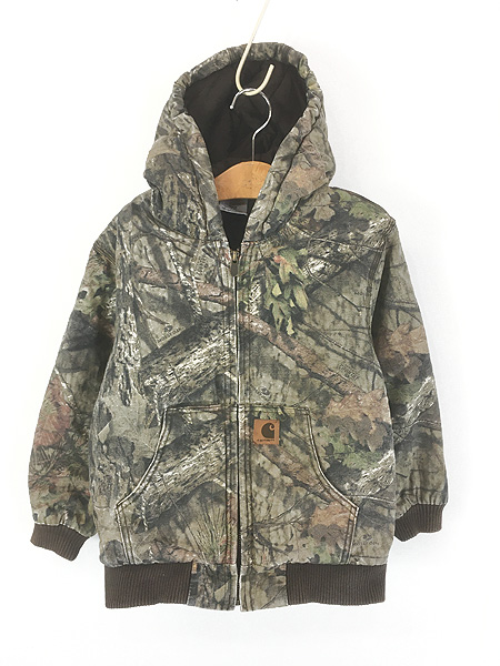 キッズ 古着 Carhartt 防寒 裏地 キルティング Mossy Oak リアルツリー カモ 迷彩 ダック ワーク アクティブ パーカー S 7-8歳位