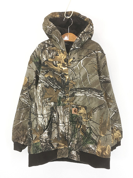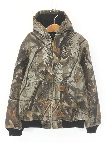 キッズ 古着 Carhartt 防寒 裏地 キルティング リアルツリー カモ 迷彩 ダック ワーク アクティブ パーカー L 14-16歳位