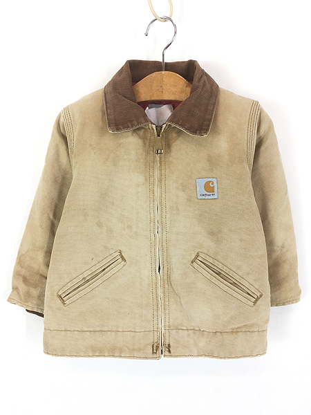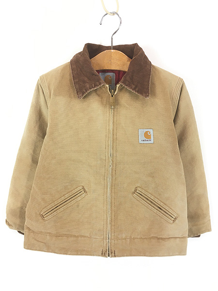 キッズ 古着 80s- Carhartt レッド キルティング ライナー ブラウン ダック デトロイト ジャケット ポケットなし 5歳位