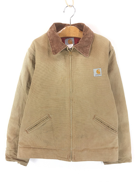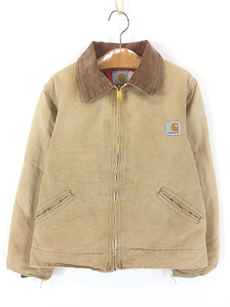キッズ 古着 80s- Carhartt レッド キルティング ライナー ブラウン ダック デトロイト ジャケット ポケットなし 12際