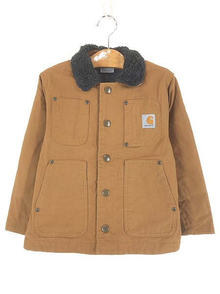 キッズ 古着 Carhartt 「Full Swing Chore Coat」 裏地フリース 襟ボア ブラウン ダック チョア カバーオール ジャケット 4-5歳