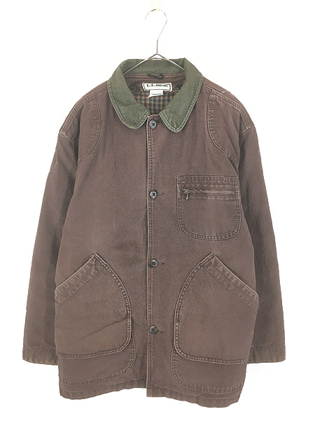 古着 90s LL Bean 名作 バーガンディー ダック ハンティング カバーオール ジャケット ライナー完備 M位