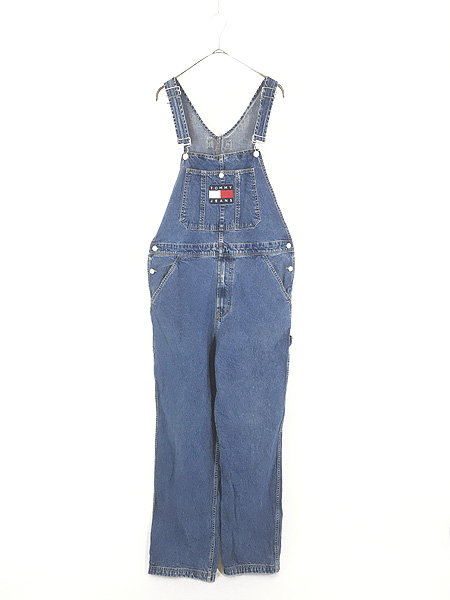 古着 90s TOMMY JEANS フラッグ ロゴ 刺しゅう パッチ デニム オーバーオール M