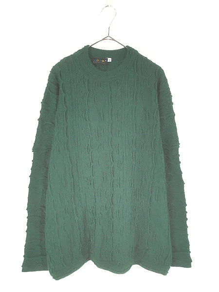 古着 COOGI グリーン ソリッド 3D ランダム ストライプ アクリル ニット セーター XL