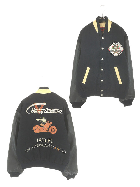 古着 HARLEY DAVIDSON ×LOONEY TUNES タズ 本革 レザー メルトン ウール スタジャン ジャケット M