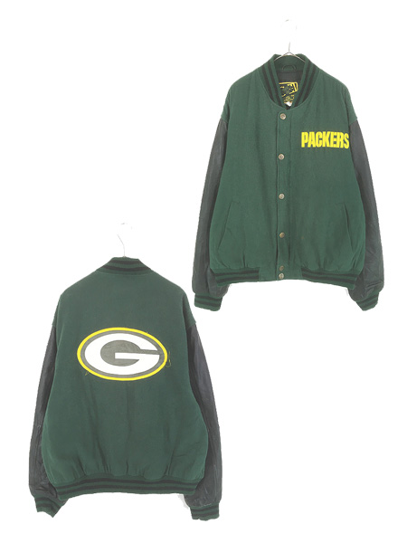 古着 90s NFL Green Bay Packers パッカーズ パデット ウール スタジャン ジャケット L