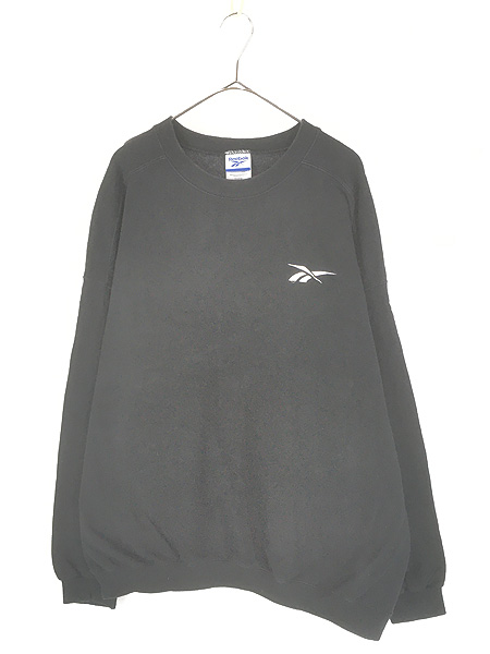 古着 90s USA製 Reebok ロゴ 刺しゅう スウェット トレーナー ブラック XL