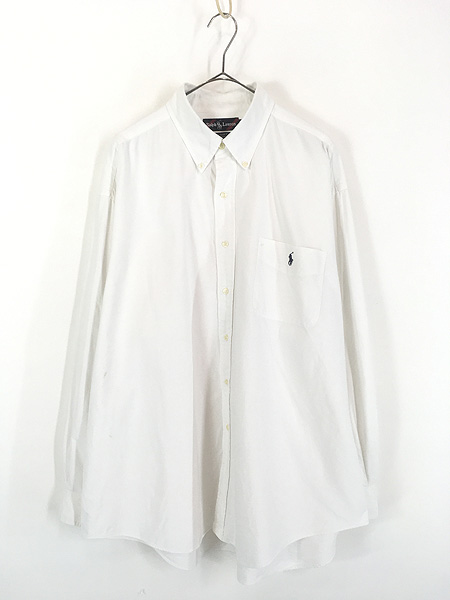 古着 90s Ralph Lauren 「BIG SHIRT」 ワンポイント ソリッド ポケット付 OXフォード BD シャツ ホワイト XL