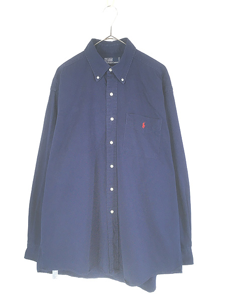 古着 90s Canada製 Ralph Lauren ワンポイント ソリッド ポケット付 BD シャツ ネイビー L