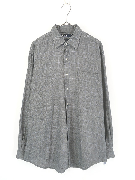 古着 90s Polo Ralph Lauren 「MARLOWE」 グレー チェック ポケット付 シャツ M