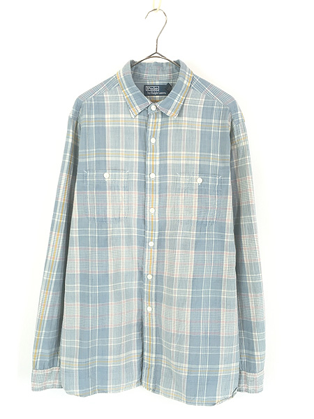 古着 Polo Ralph Lauren マルチ チェック マチ付き ワーク シャツ L
