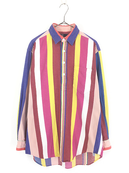 古着 90s Polo Ralph Lauren カラフル マルチ ストライプ プルオーバー シャツ S