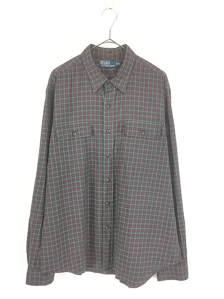 古着 Polo Ralph Lauren フラップポケット ダーク チェック シャツ XL