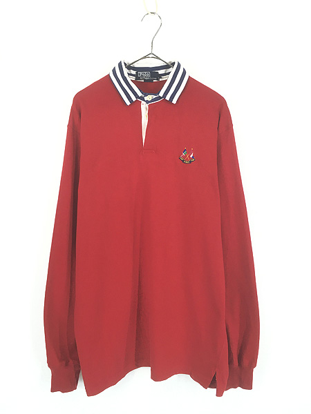 古着 90s USA製 Polo Ralph Lauren ブラック×レッド エンブレム パッチ ラガー ラグビー シャツ M