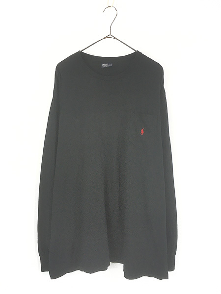 古着 90s Polo Ralph Lauren ワンポイント ソリッド 長袖 Tシャツ ロンT ポケT ブラック XL
