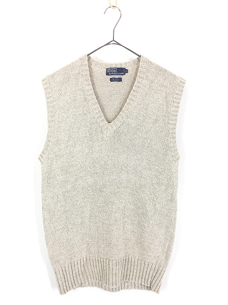 古着 90s Polo Ralph Lauren ワンポイント ソリッド コットン リネン ニット ベスト アイボリー M