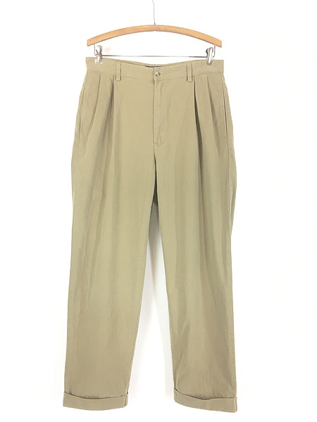 古着 90s Polo Ralph Lauren コットン チノ タック パンツ テーパード カーキ W34 L32