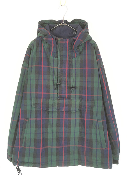 古着 90s GAP チェック コットン ハーフジップ アノラック パーカー ジャケット フーディー L