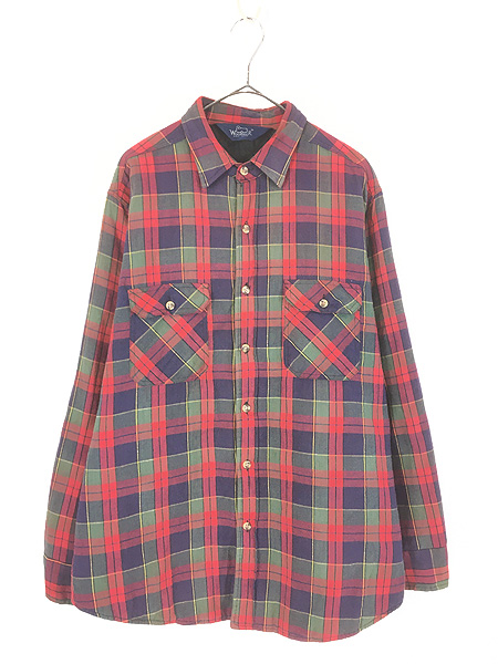 古着 90s WoolRich チェック パデッド キルティング フランネル シャツ ネルシャツ L