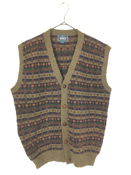 古着 90s WoolRich ネイティブ ボーダー ウール ベスト カーディガン L