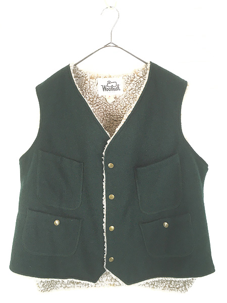 古着 70s USA製 WoolRich ボア フリース ライナー 無地 ソリッド メルトン ウール ビーチ ベスト L