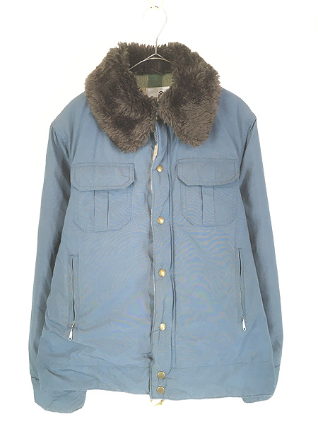古着 70s WoolRich 襟ボア チェック ウール ライナー パデッド 60/40 クロス マウンテン ジャケット M