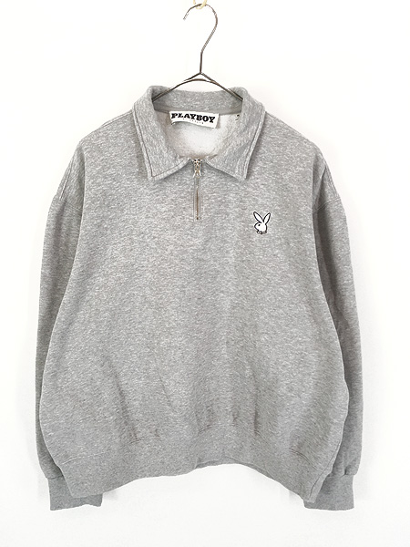 レディース 古着 00s PLAY BOY ラビット ワンポイント ハーフジップ 襟付き スウェット トレーナー M