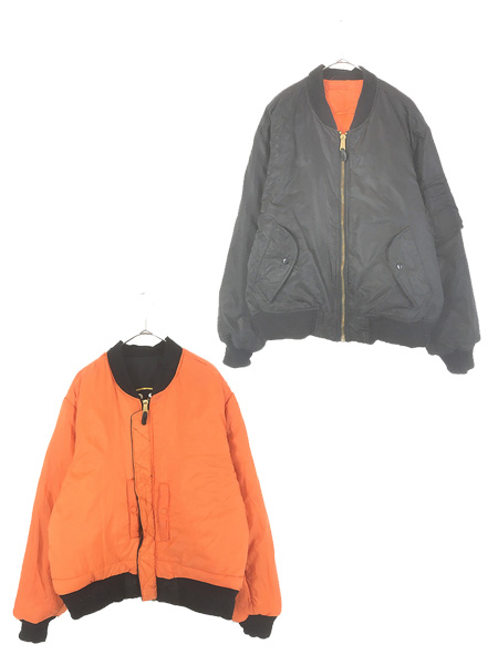 古着 90s ROTHCO ULTRA FORCE 「USMC」 ミリタリー MA-1 リバーシブル フライト ジャケット 黒×オレンジ XL位