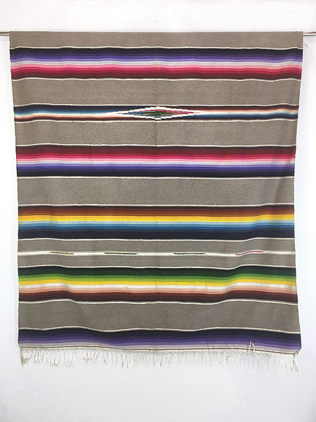 雑貨 古着 60s- ネイティヴ チマヨ カラフル マルチボーダー ブランケット ラグ マット 大判