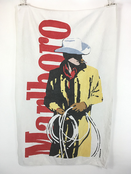 雑貨 古着 90s USA製 Marlboro マルボロ 希少!! カウボーイ パイル バスタオル 大判