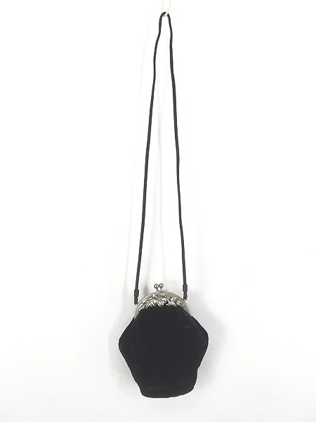 雑貨 古着 70s- 花 フラワー モチーフ メタル がま口 ベロア ショルダー バッグ 小型