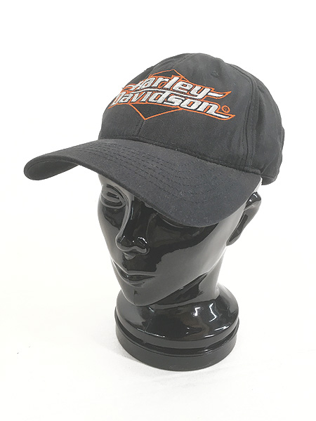雑貨 古着 HARLEY DAVIDSON ロゴ バー&シールド 刺しゅう 6パネル キャップ 黒 帽子