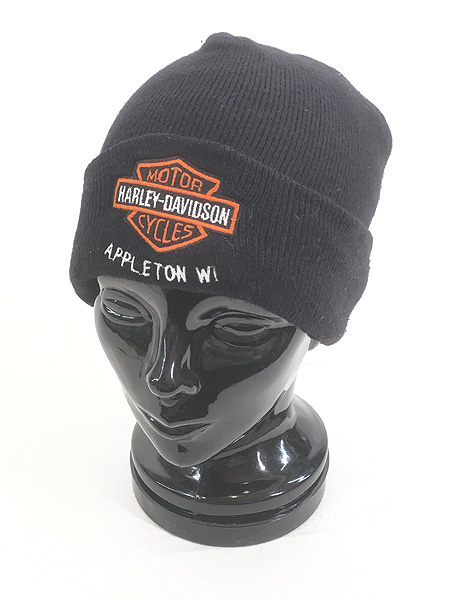 雑貨 古着 90s USA製 HARLEY DAVIDSON バー&シールド ニット ワッチ キャップ ビーニー 黒 帽子