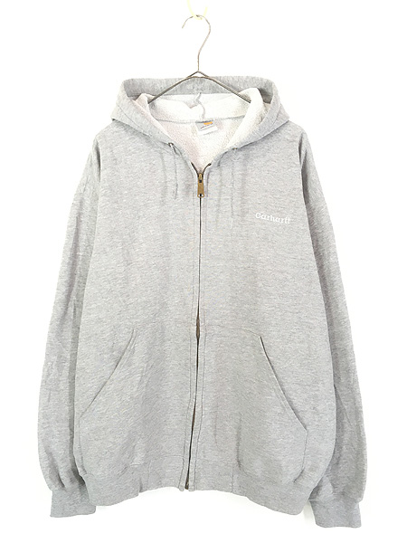 古着 90-00s Carhartt ワンポイント 刺しゅう スウェット ジップ パーカー グレー L位