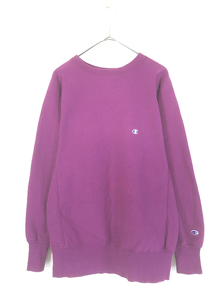 古着 90s USA製 Champion Reverse Weave 青目 ワンポイント リバース スウェット トレーナー パープル L