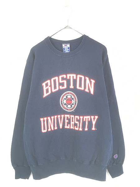 古着 90s Champion 「BOSTON UNIVERSITY」 3段 カレッジ 前V スウェット トレーナー M