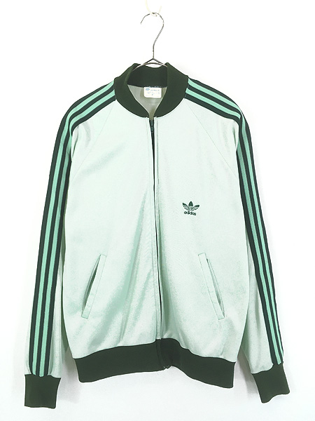 古着 80s USA製 adidas ATP 光沢 ジャージ トップ トラック スーツ ライトグリーン M