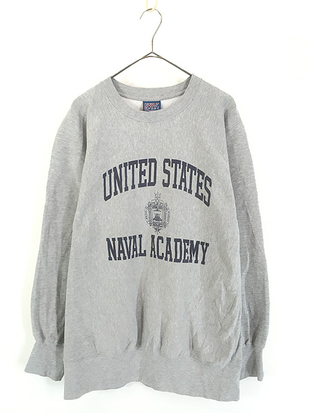 古着 00s MV Sport 「USNA」 霜降り ミリタリー リバース タイプ ヘビー スウェット トレーナー M