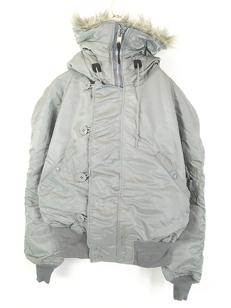 古着 80s USA製 ALPHA INDUSTRIES N-2B 6278F ファー フード ミリタリー 防寒 フライト ジャケット シルバー M