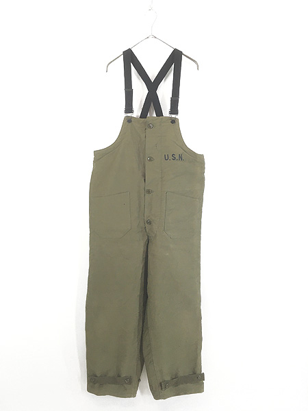 古着 40s 米軍 USN ステンシル ジャングルクロス N-1 デッキ パンツ オーバーオール M 極上!!