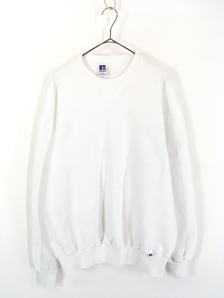 古着 90s USA製 Russell 無地 プレーン 前V セットイン スウェット トレーナー ホワイト L