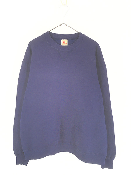 古着 70s USA製 Russell 無地 プレーン 前V セットイン スウェット トレーナー ネイビー XL