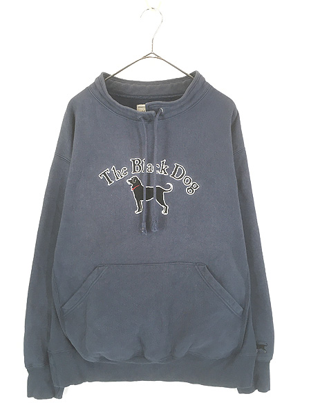 古着 「Black Dog」 ワンちゃん リバース タイプ スタンドカラー ヘビー スウェット トレーナー チャコール M