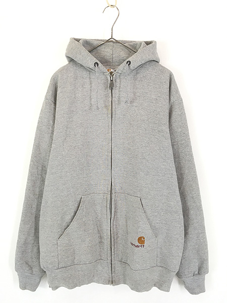 古着 80s Carhartt 裏地 メッシュ スウェット ジップ パーカー グレー XL位
