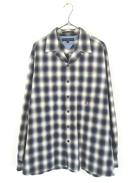 古着 90-00s TOMMY HILFIGER オンブレ シャドー チェック 開襟 ボックス シャツ L