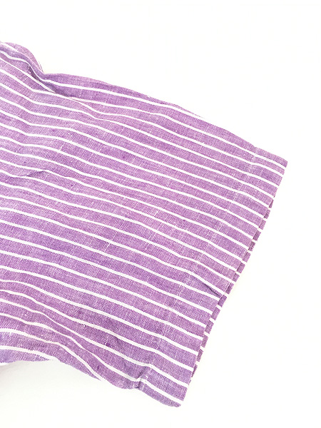 古着 90s Ralph Lauren 「CLASSIC FIT」 紫×白 ストライプ 100% リネン 半袖 BD シャツ L 古着【10off】