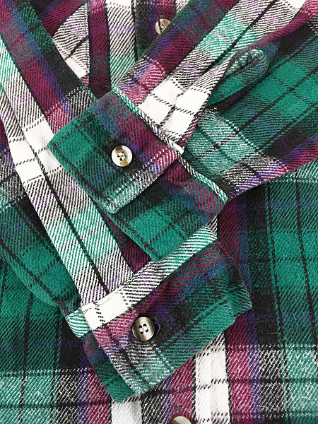 古着 90s USA製 FIVE BROTHER パープル チェック ヘビー フランネル コットン シャツ ヘビネル M