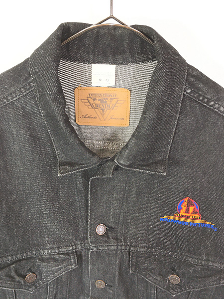古着 90s Canada製 Hollywood Pictures 映画 ムービー 先染め スーパー ブラック デニム トラッカー ジャケット Gジャン XL