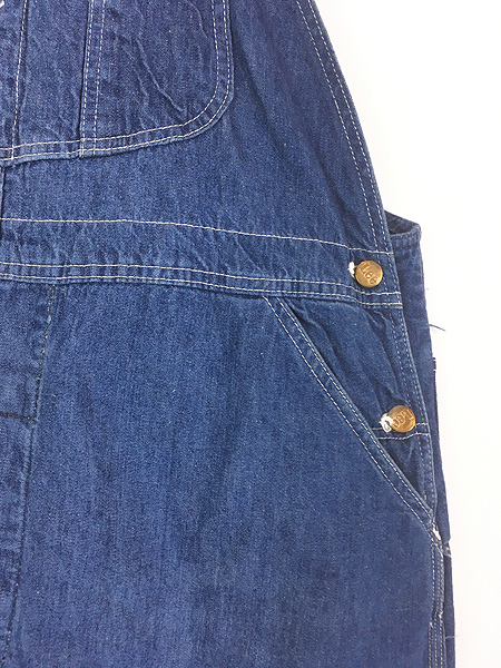 古着 70s USA製 Lee 濃紺 ブルー ダメージ デニム ワーク オーバーオール サロペット W41 L30